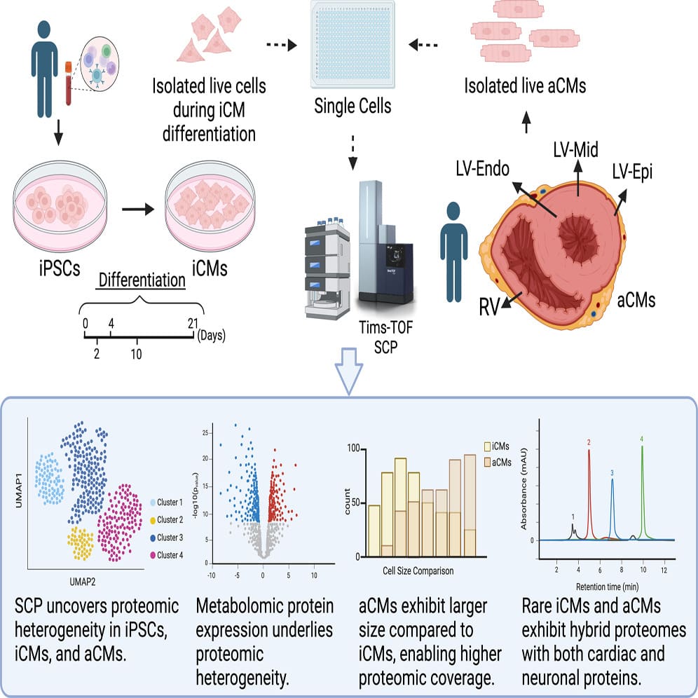 Graphical abstract. From Ai et al., 2025. “Single Cell Proteomics Reveals Specific Cellular Subtypes in Cardiomyocytes Derived from Human iPSCs and Adult Hearts“, Molecular & Cellular Proteomics, 2025, 100910, ISSN 1535-9476, https://doi.org/10.1016/j.mcpro.2025.100910. Licensed under the terms of the Creative Commons CC-BY license.