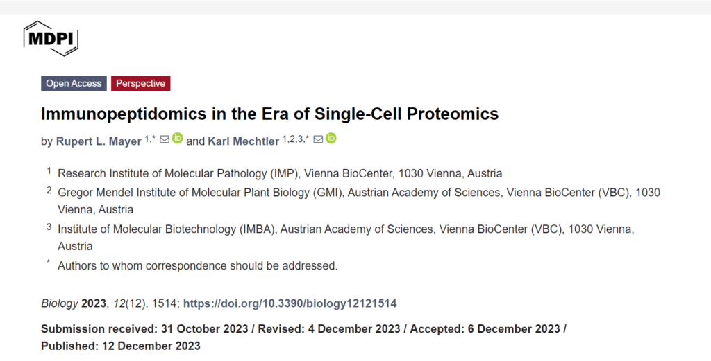 Immunopeptidomics, the study of MHC-presented peptides, is a rapidly growing field within proteomics. Mayer & Mechtler’s perspective highlights how technological innovations initially developed for single-cell proteomics have aided the evolution of immunopeptidomics