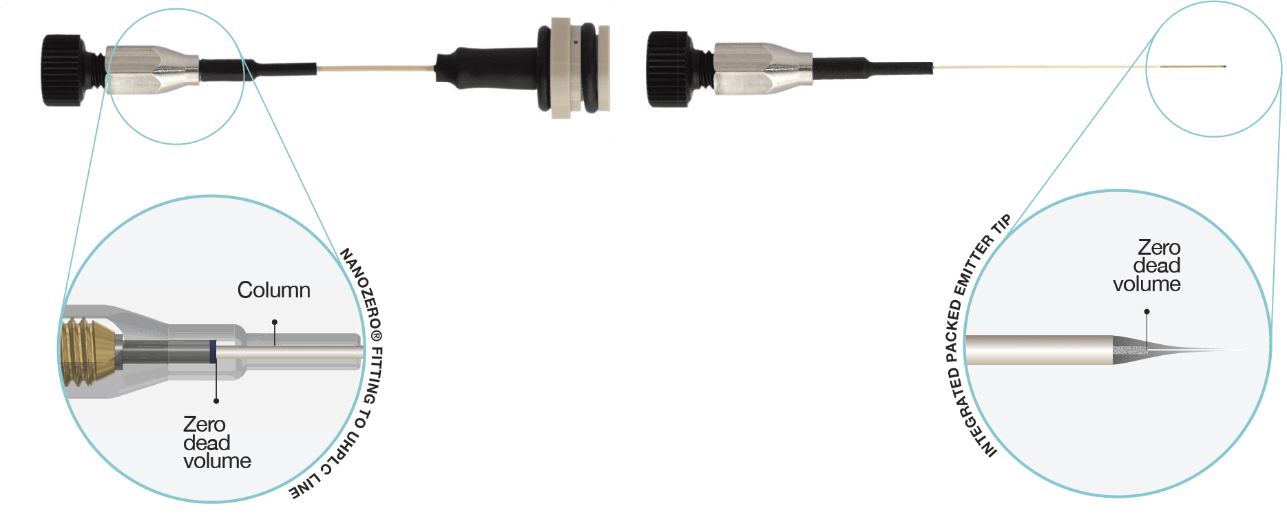 5 cm x 75 μm C18 UHPLC packed emitter column, compatible with Nanospray Flex, EASY-Spray and Newomics ion sources. (HeatSync™ Rapid Housing Kit required for EASY-Spray and Newomics sources)